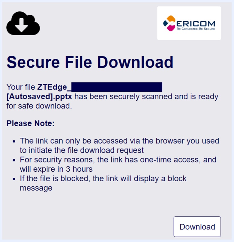 ユーザーがファイルをダウンロードすると、ユーザー用のランディングページが作成され、ダウンロードされます。 ユーザーはランディングページを開き、ファイルスキャンの進行状況を確認する必要があります。