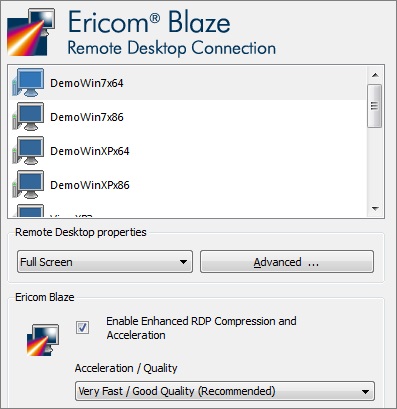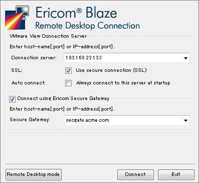 任意の Blaze 設定を構成し、選択したデスクトップに接続するために Connect ボタンをクリックします。
