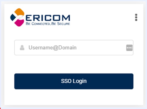 「 Username@Domain 」の入力を行い、「 SSO ログイン 」オプションを選択します (ドメインはフィールド Domain List (ドメインリスト) でテナントごとに定義する必要があります) 。ユーザは、SAML 資格情報を使用して管理コンソールにログインします。