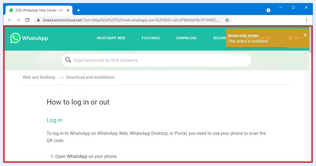 「Isolate」ボタンを選択すると、元の URL が Ericom Shield のブラウザ分離で開きます。