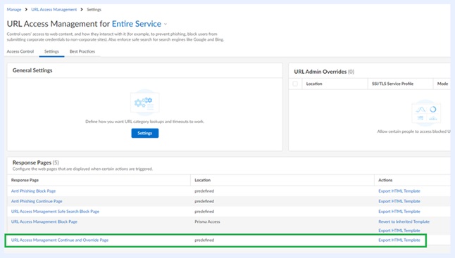 デフォルトページを表示および編集するには、「General | Blocked – View in Remote Browse」(一般 | ブロック - リモートブラウザ)をクリックします。