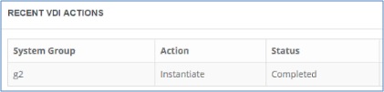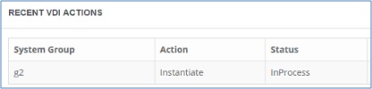 ダッシュボード VDI ウィジットには、アクションとそのステータスが表示されます。