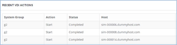 マネージド・システム・グループを作成すると、「最近の VDI アクション」ウィジットがダッシュボードに追加されます。 システムにマネージド・システム・グループが存在しない場合、このウィジットは表示されません。