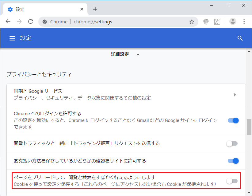 Chrome拡張を正常に稼働させるために、Chromeの予測サービスはオフにしてください。