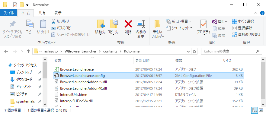 インストール後、設定を変える必要がある場合はインストール先フォルダーに格納された BrowserLauncher.exe.configファイルをメモ帳などで編集してください。