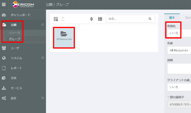 左側のナビゲーションパネルより、[公開] – [グループ] を選択します。