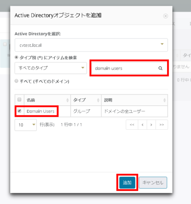 ユーザ一覧の中から追加対象のユーザ/ユーザグループを選択し、[追加] ボタンをクリックします。