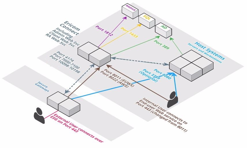 Ericom のコンポーネントで使用されるデフォルト・ポート