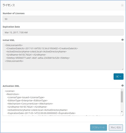 Ericom からライセンス・ファイルを受け取り、そのファイルをシステムにインポートします。 ライセンスの内容は以下の構造となっています:
