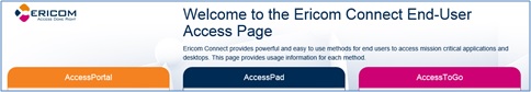 AccessPortal は Ericom Connect のインストールに含まれています。 AccessPortal(EUWS) のインストール完了後、ユーザは以下のいずれかの AccessPortal URL を利用します:
