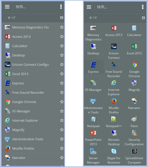 すべて - 使用可能なすべてのアプリケーションやデスクトップを表示します。 各セクションは、展開または折りたたむことができます。