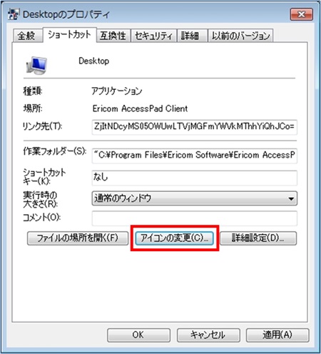 - パラメータには、次のフォーマットを使用します:"-accesspad /server=<サーバ名>"
