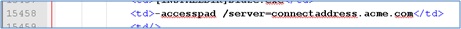 - 「 EricomAccessPadClient64.xml」ファイルを開き、15458 行目に移動し、「SHORTCUT_PARAMS」をアドレス・パラメータで置き換えます。