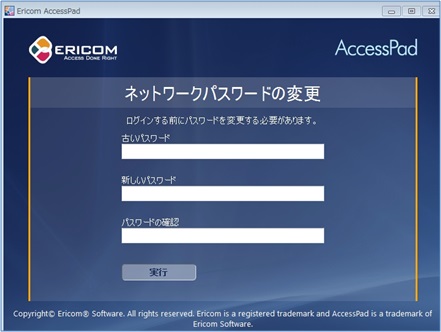 ユーザがEricom Access のポイントにログインし、パスワードの変更が必要な場合、プロンプトが表示されます。