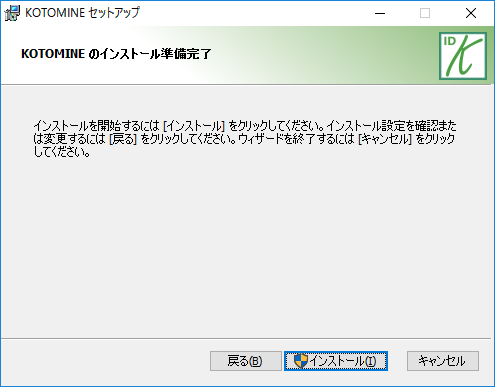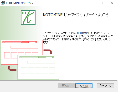 1. KOTOMINEのフォルダーからSetup.x86.msiを起動します。