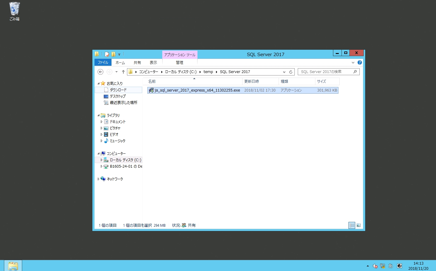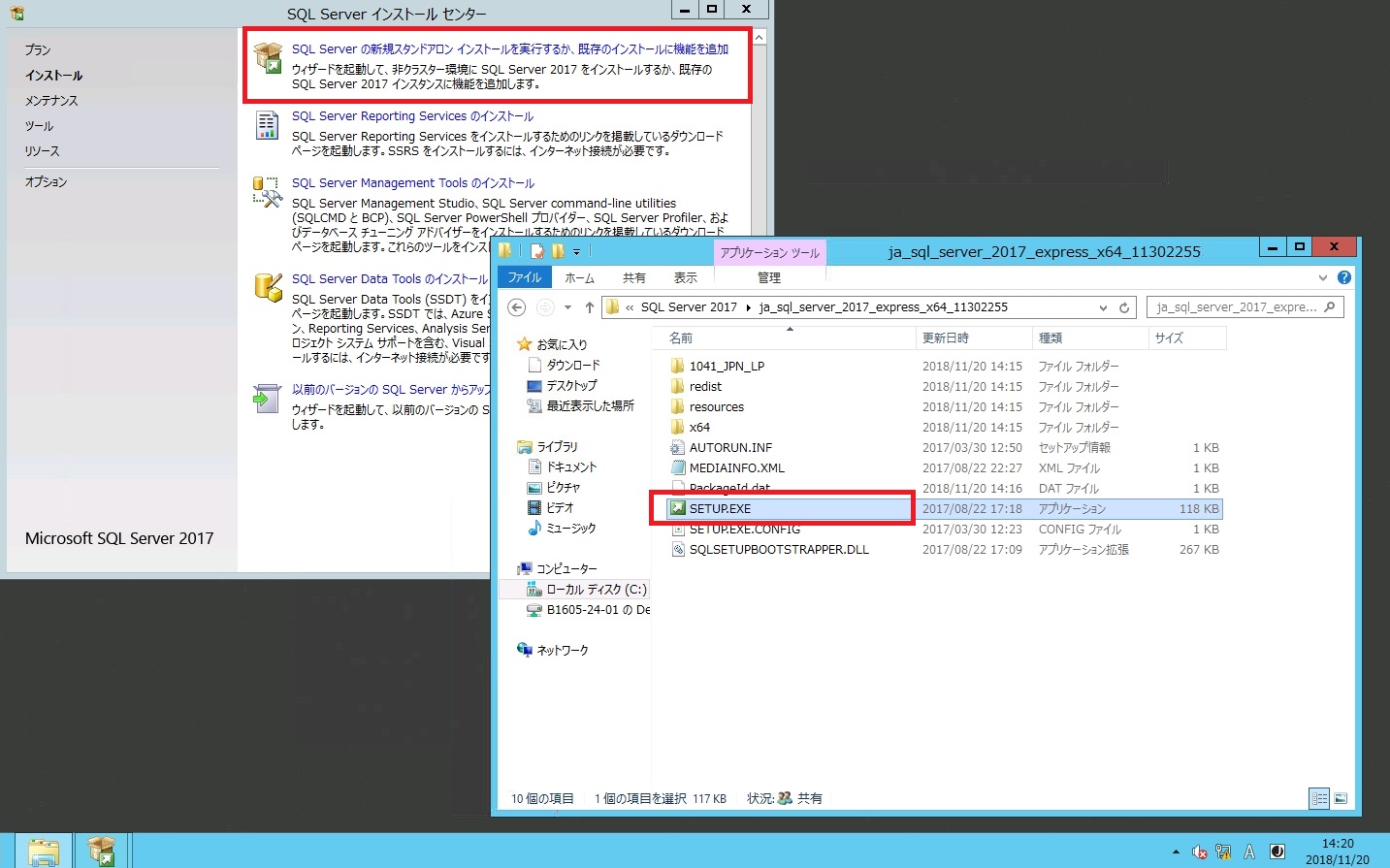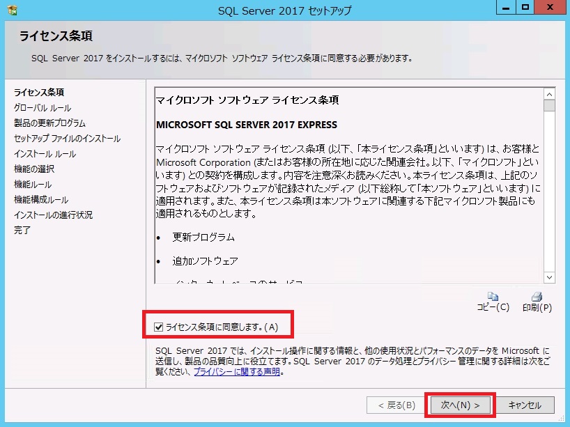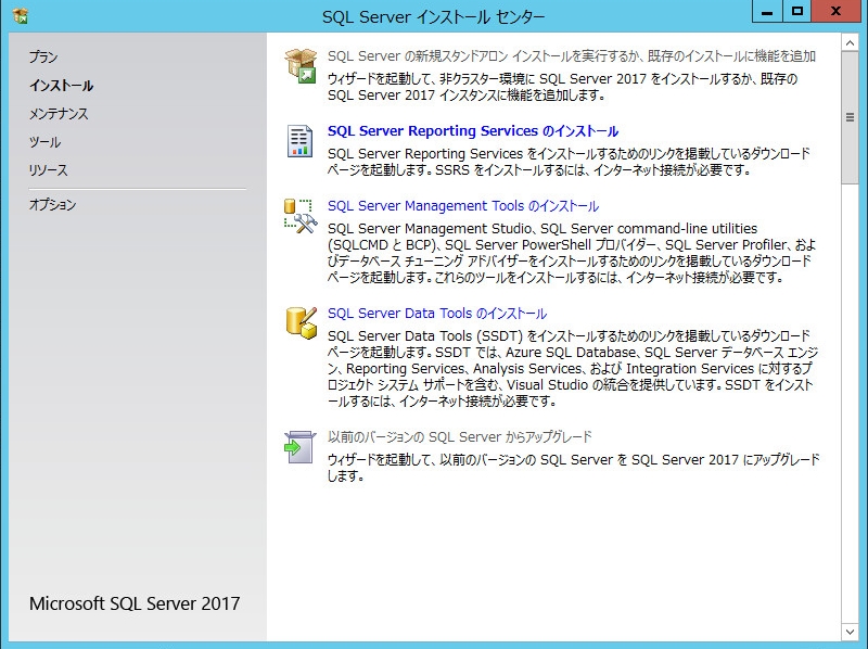 - 本手順では、SQL Server 2017 Expressをインストールしています。