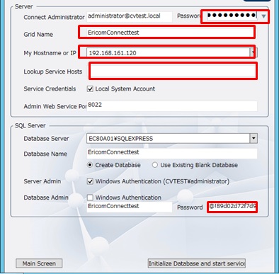 Connectサーバのインストール作業用アカウント(SQLの構築含む)は今後運用管理で利用する削除しないユーザをご準備ください。