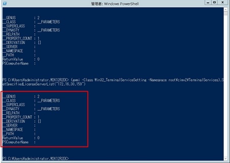 前述「リモートデスクトップセッションホストの設定」にてローカルグループポリシーで設定が出来なかった場合に、ローカルグループポリシーの代わりにPowerShellでライセンスモード指定とライセンスサーバの指定が可能です。