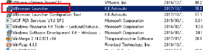 プログラム一覧から、[WBrowser Launcher] をアンインストールします。